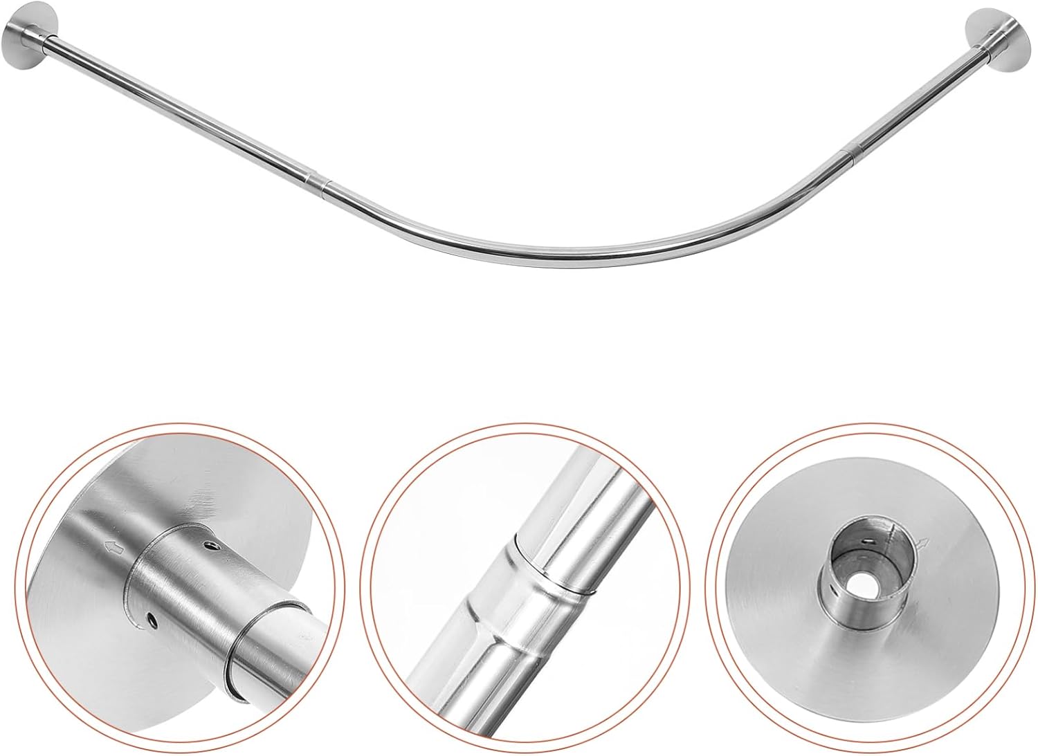 Package Include 1 x Curved Shower Curtain Rod 1 x Glue Characteristics -Size:90.00X70.00X9.00cm/35.37X27.51X3.54in curved shower curtain rod -Note: Telescopic range: 70-95cm, 90-130cm flexible curtain rod -Material:Stainless steel shower curtain rods for bathroom -Color:Silver bathroom curtain rail -The modern and fashionable appearance of the tension rod makes it easy to match well with most home decorating styles curtain rod adjustable. -With a convenient and quick installation process, this curtain pole can be easily set up quickly tension curtain rods. -This versatile pole can be used for hanging clothes, hanging the shower curtain, and more, making it a great addition to any home curtain rod for shower. -The adjustable length of this curtain rod allows it to fit perfectly in a variety of different spaces bathroom telescopic rod. -Made from stainless steel materials, this tension curtain rod is built to last tension curtain rod.Goods Descriptioncurtain rods Made from stainless steel material, this extension rod is not only but also reliable.curtain rod The Telescopic Curtain Rod is a versatile and convenient solution for all your hanging needs.shower rods for bathroom tension With its adjustable length, it can easily fit into different spaces and adapt to various scenarios